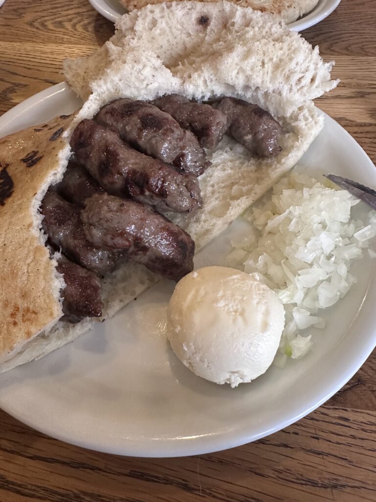 Genel olarak et yemekleriyle çok aram yok. Ama , et yemeği olan Cevapi ‘yi çok beğendim. Küçük , ızgara köftelerden oluşuyor, yanına mutlaka “kaymak “ denen birşey konuluyor. Adı kaymak ama aslında bildiğimiz kaymak değil ; daha çok yumuşak tereyağ gibi. Bunun dışında özellikle tercih ettiğim yerler , şehrin çeşitli yerlerine dağılmış olan İtalyan restoranlarıydı . Porsiyonlar oldukça büyüktü . Ve dondurmalar…. Küçük dondurmacılarda taze meyvelerle yapılan dondurmalar . Belgrad’ın en ünlü dondurmacısı Crna Ovca “Kara Koyun “ anlamına gelen küçük dükkan , lezzetli dondurmaları.