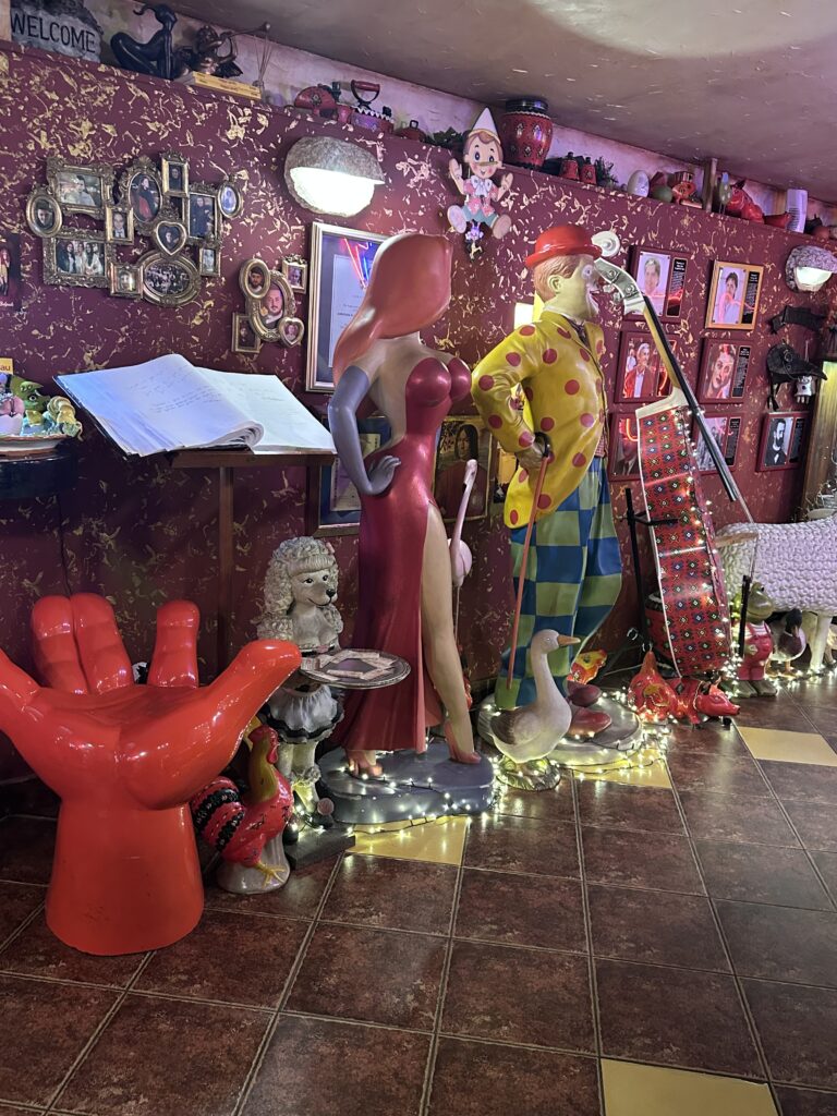 Lorenzokakalamba restaurant en ilginç mekanlardan biriydi. İçeri girer girmez gözüm her köşeye ayrı takıldı . Renk renk objeler … Sanki sanat galerisiyle lunapark karışımı bir yer.