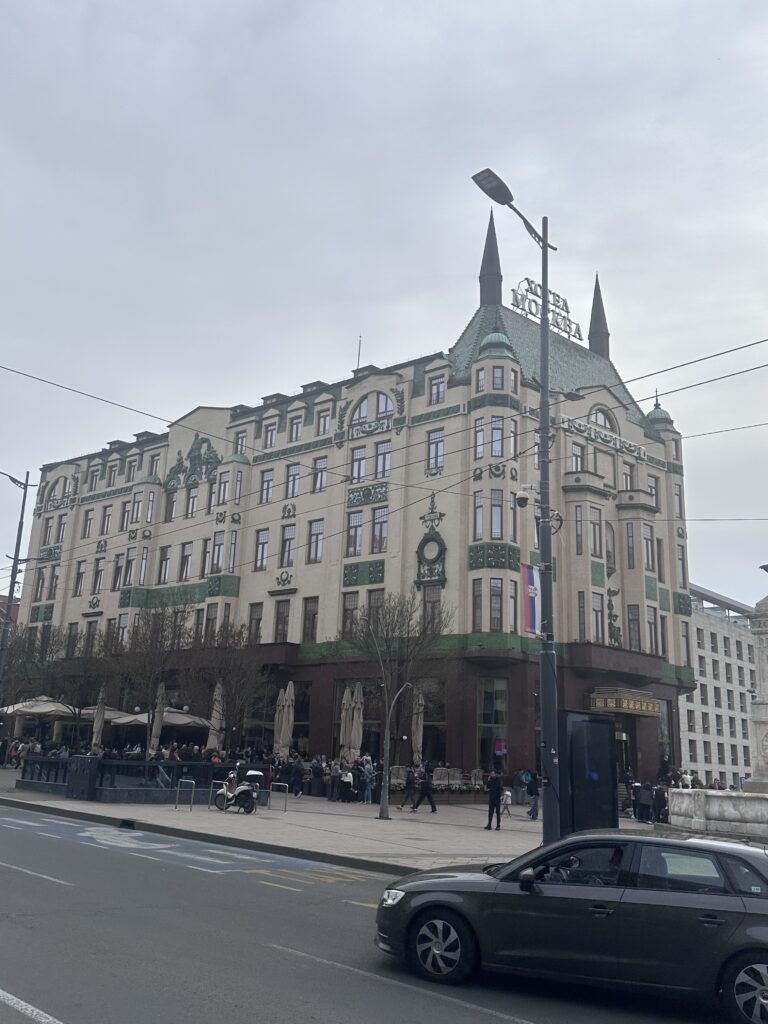 Hotel Moskva , Belgrad’ın hem tarihi hem de sosyal hayatındaki önemli noktalardan biri. Dış cephesiyle zarif , içiyle nostaljik. Şehrin simgesi haline gelmiş “Moskva Schnitte “ pastasını tatmak bir ritüel . Vişne , krema ve ince badem katmanların uyumu. Hotel, birçok ünlüyü ağırlamış , iç mimarisi klasik .
