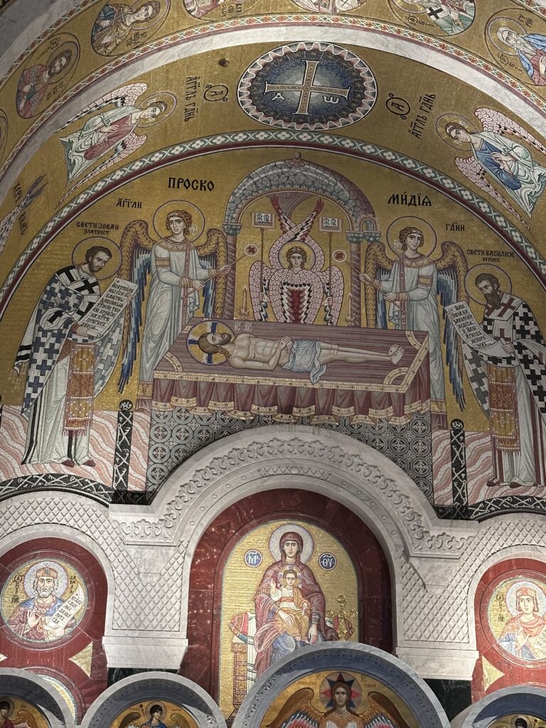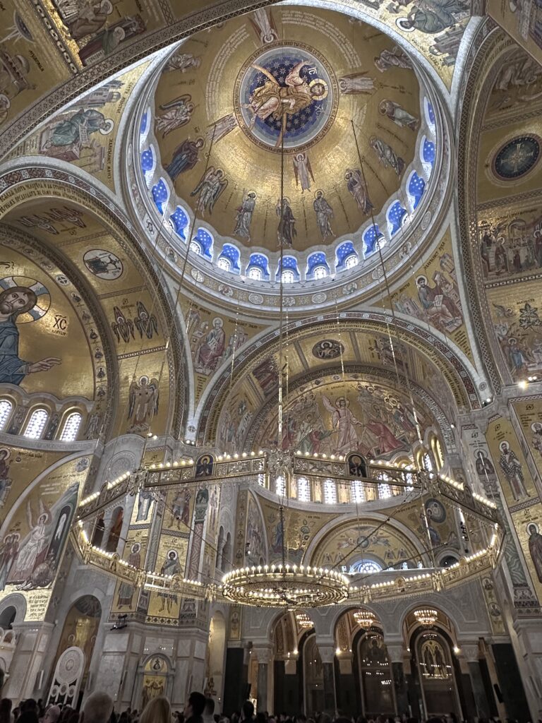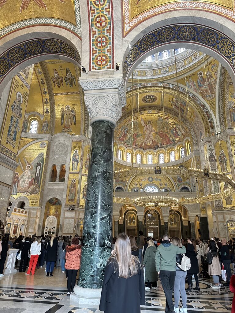 Belgrad ‘ın en etkileyici yapılarından biri olan Aziz Sava Katedrali , mimarisi ve manevi havası ile oldukça güçlü bir izlenim bırakıyor . Dış cephesi beyaz mermer , dev kubbesi altın detaylarla bezeli. alt bölüm ibadete açık. Bir pazar sabah ayinine denk geldim . İnsanlar ayakta ,dualar ilahilerle okunuyor , tütsü kokusu kiliseyi dolduruyordu. Aziz Sava Katedrali , sadece Sırbistan ‘ın değil , Balkanlar’ın en büyük Ortodoks kilisesiymiş. Katedral , adını Sırp Ortodoks Kilisesi’nin kurucusu ve Sırbistan ‘ın ilk başpiskoposu olan Aziz Sava’dan alıyormuş. Aziz Sava ‘da katıldığım Ortodoks ayini, sadece bir dini tören değildi; hangi dinden olursa olsun, insanları birleştiren en saf güç , Tanrı’ya yönelişin ta kendisiydi.