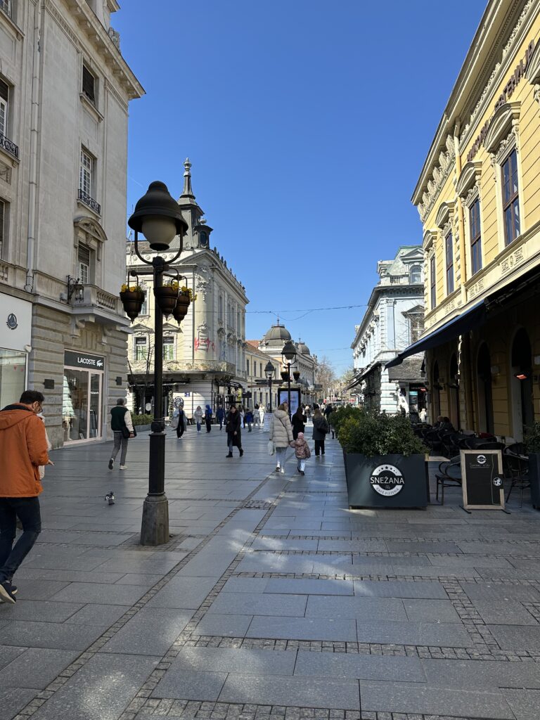 Belgrad’ın en ünlü caddesi olan Knez Mihailova , bizdeki İstiklal Caddesi’ni andırıyor . Trafiğe kapalı , uzun ve taş döşeli bu sokakta yürürken , kafeler , sokak müzisyenleri , kitapçılar , tarihi binalar yan yana gözlerinizin önünden geçiyor.